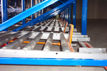 該型貨架采用重力式輥筒輸送機作為貨架的主要部件,物品通過輥道自動從末端移動到前端,配合自動堆垛機,升降臺或高位叉車作業(yè),具有品種區(qū)別明顯、物品先進先出、空間利用率高等顯著優(yōu)點。