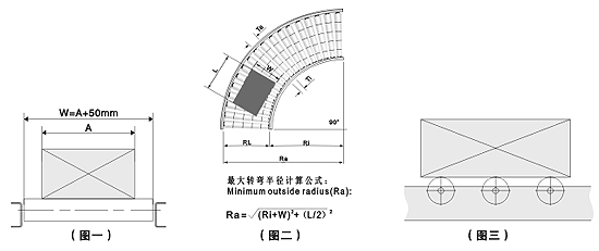 ·在有轉(zhuǎn)彎輥道時(shí)應(yīng)考慮轉(zhuǎn)彎的半徑,以保證物料的順利輸送。(圖二)