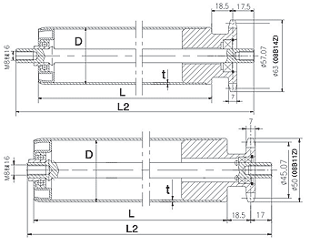 | 輥筒直徑D | 軸徑d | 壁厚t | 長度L1 | 筒體材料 | 表面處理 |