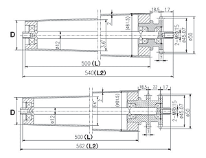 | 輥筒直徑D | 軸徑d | 壁厚t | 長度L | 長度L1 | 長度L2 | 筒體材料 | 表面處理 |