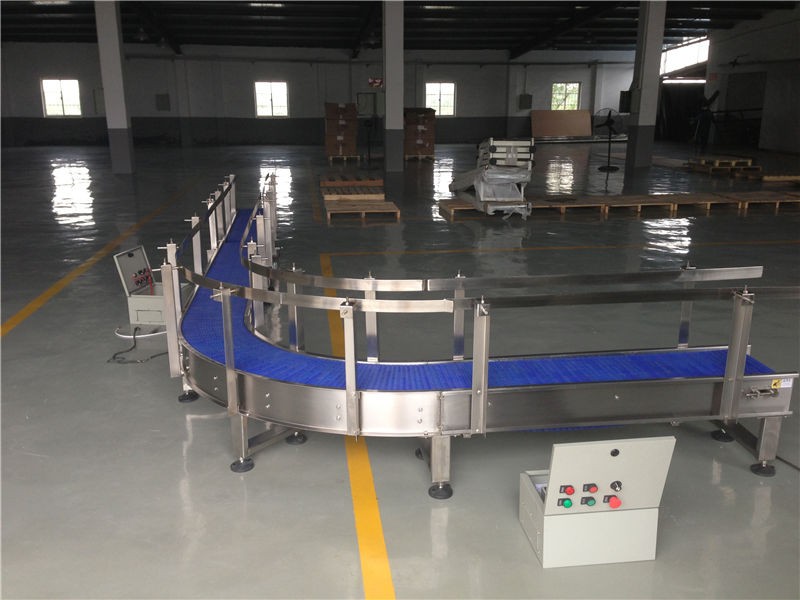 塑鋼網(wǎng)帶輸送機(網(wǎng)帶POM材質(zhì),機身為304不銹鋼)